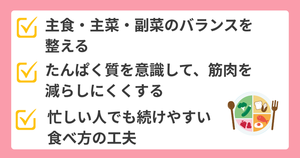 筋肉は年齢とともに減りやすくなるため、食事でも意識して守っていきたいところです。